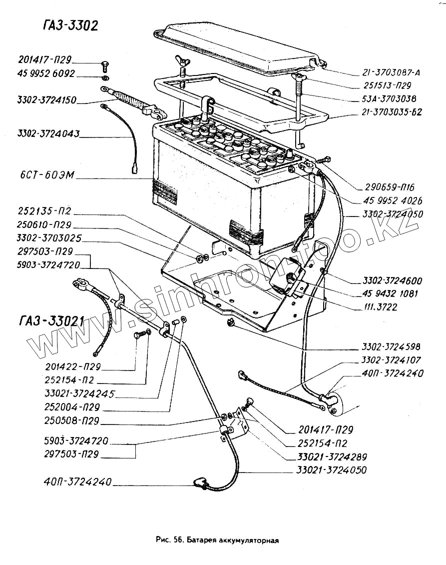 Каталог запасных частей к технике: ГАЗ-3302 (ГАЗель). Батарея аккумуляторная