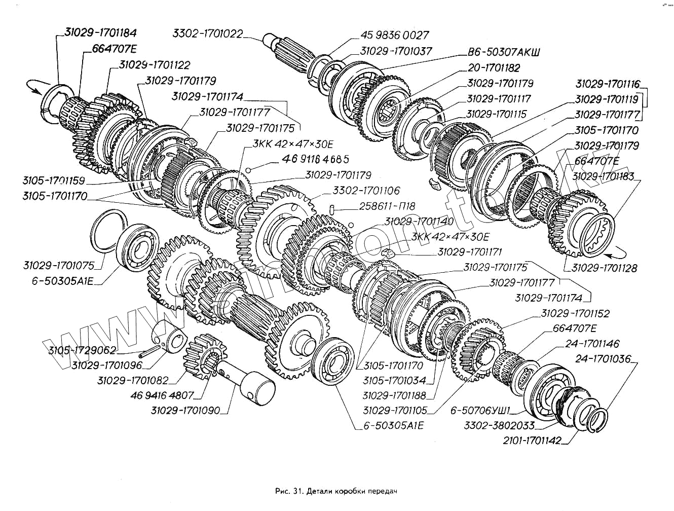 Каталог запасных частей к технике: ГАЗ-3302 (ГАЗель). Детали коробки передач