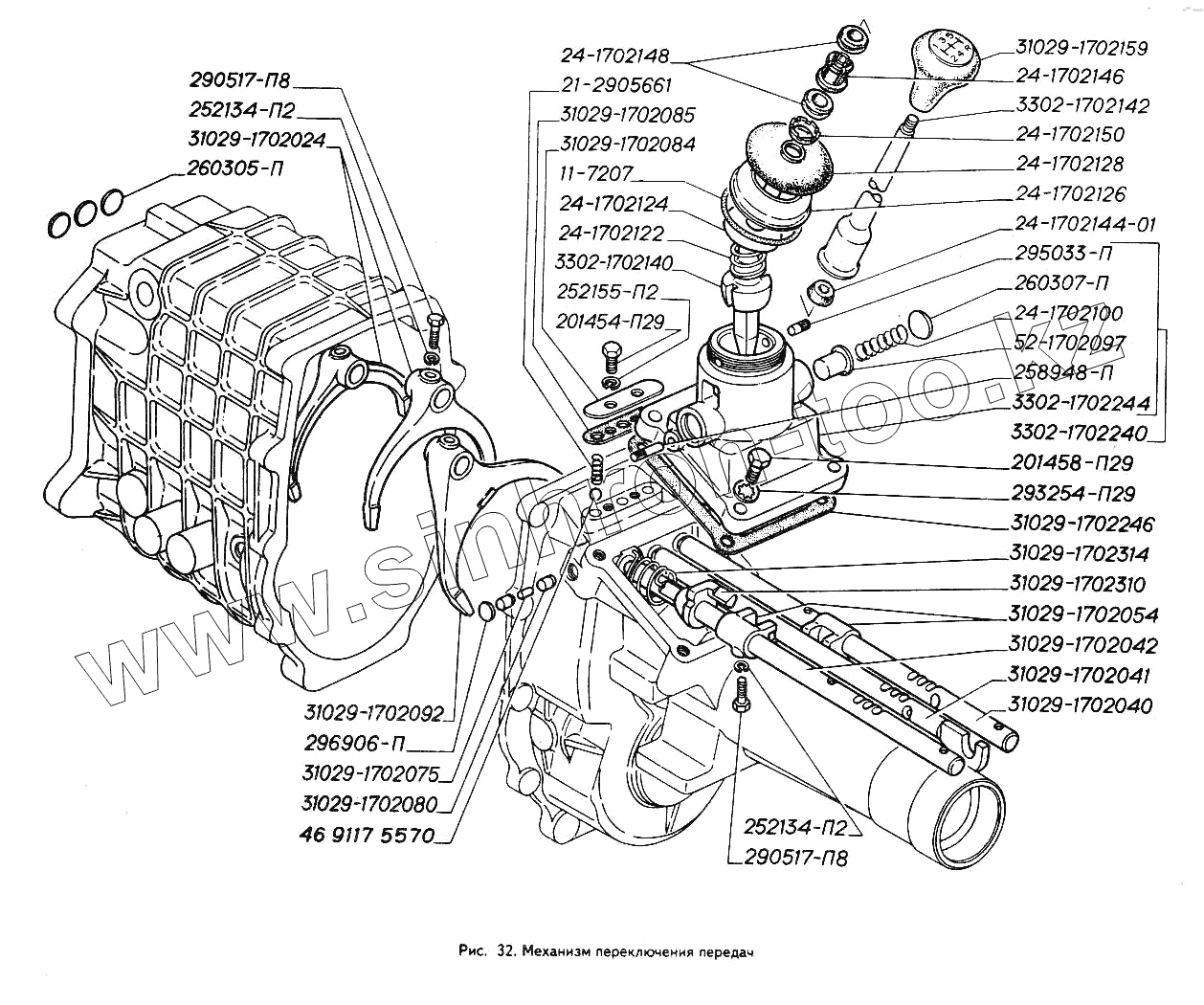 Каталог запасных частей к технике: ГАЗ-3302 (ГАЗель). Механизм переключения передач