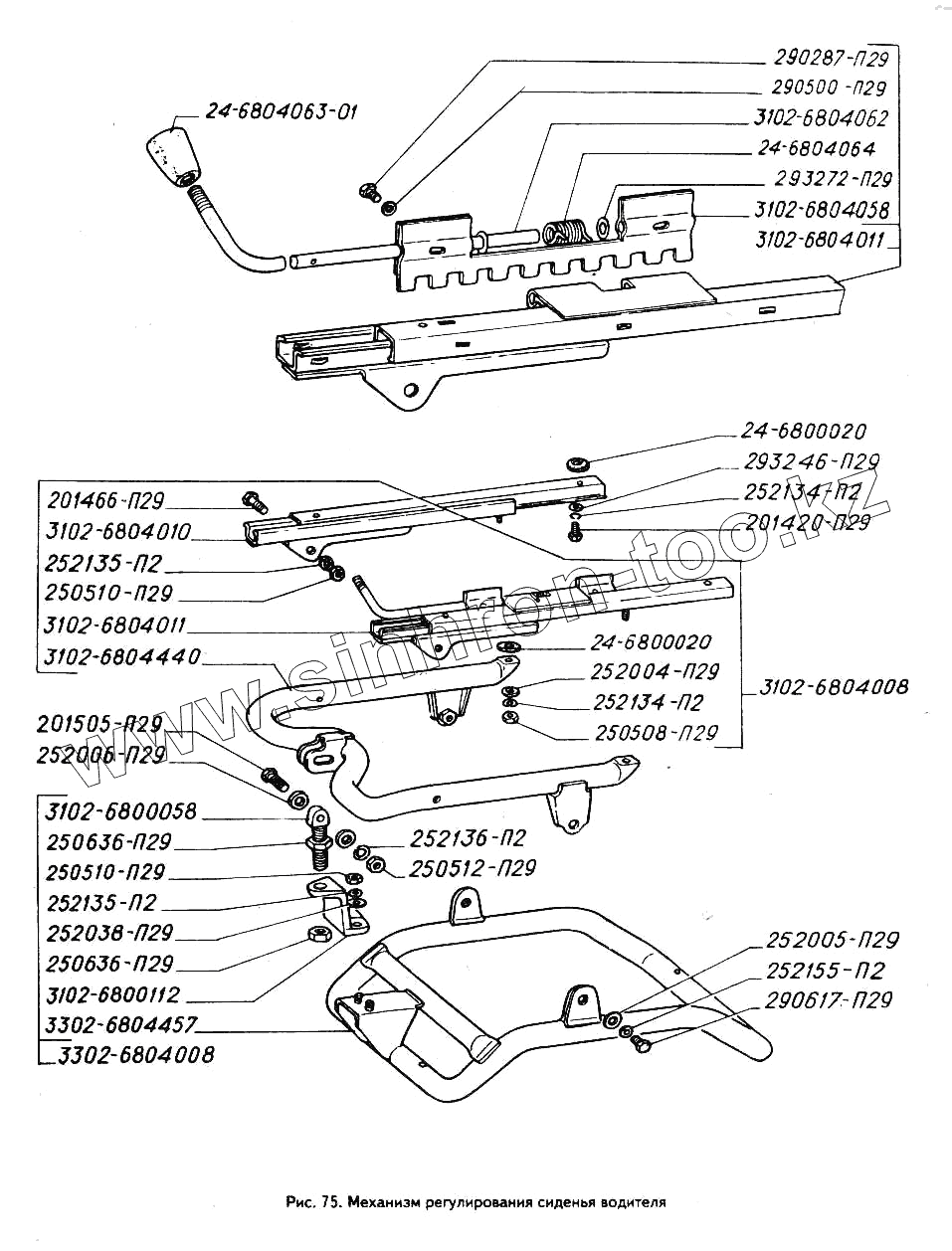 Каталог запасных частей к технике: ГАЗ-3302 (ГАЗель). Механизм регулирования сиденья водителя