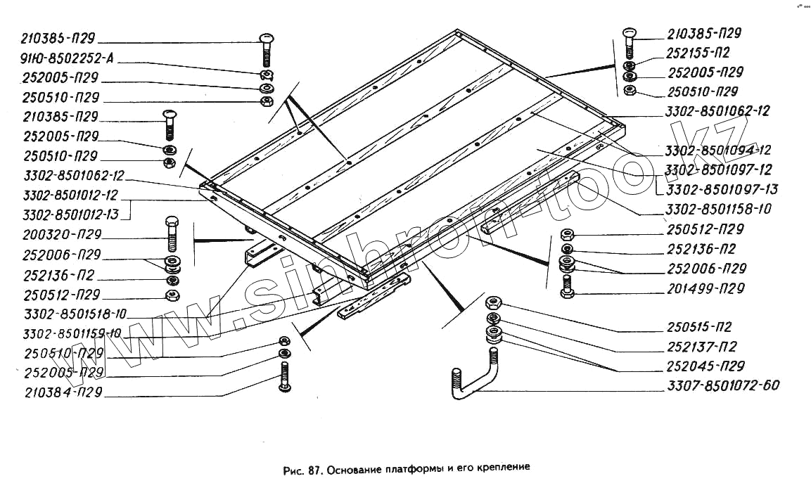 Каталог запасных частей к технике: ГАЗ-3302 (ГАЗель). Основание платформы и его крепление