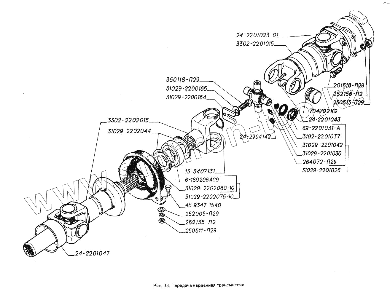 Каталог запасных частей к технике: ГАЗ-3302 (ГАЗель). Передача карданная трансмиссии