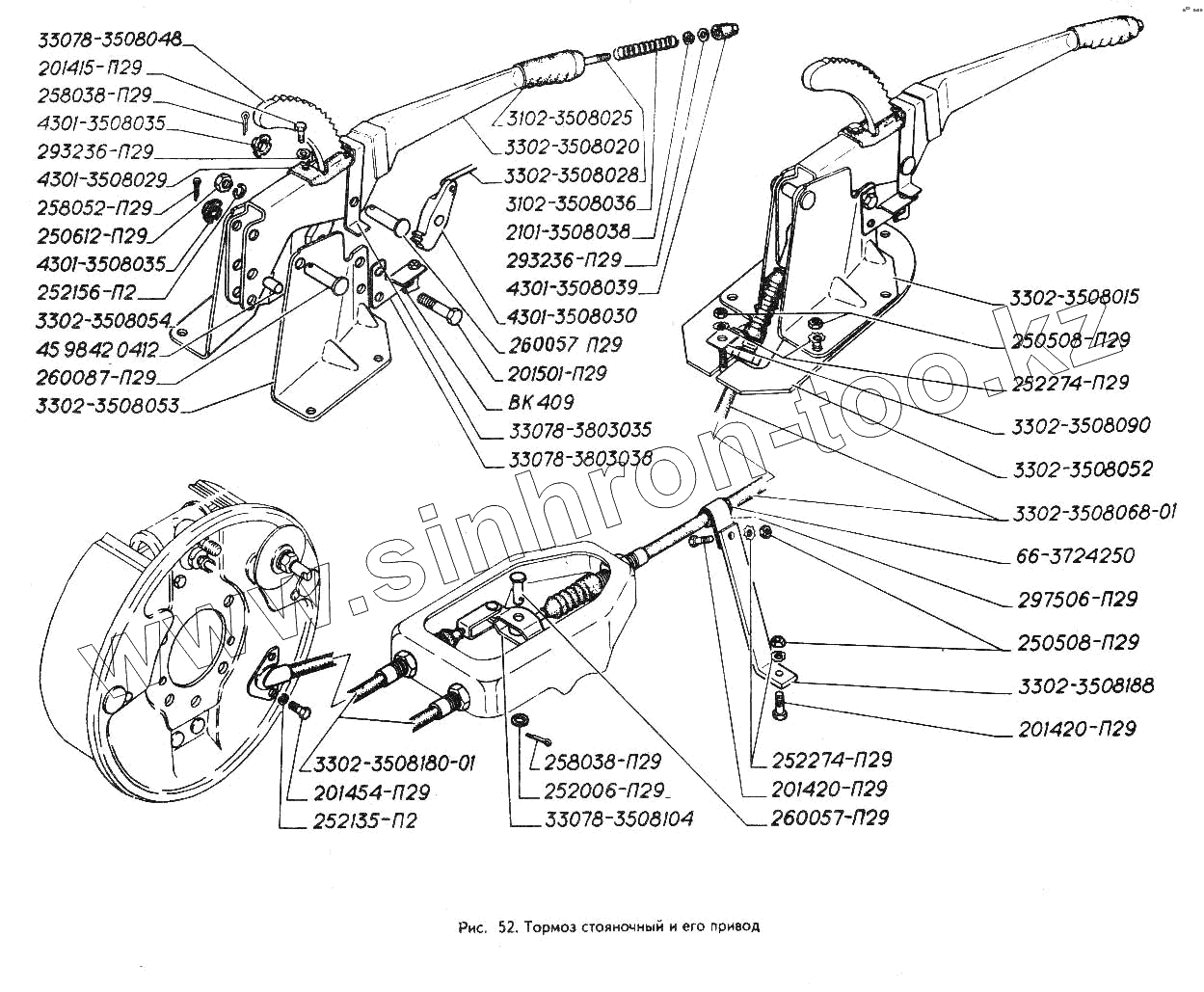 Каталог запасных частей к технике: ГАЗ-3302 (ГАЗель). Тормоз стояночный и его привод
