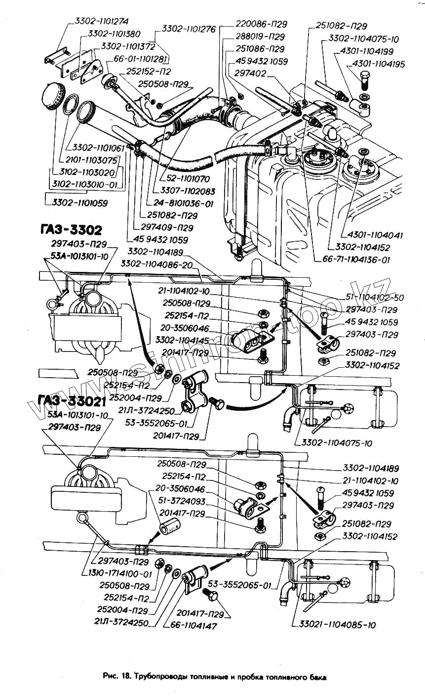 Каталог запасных частей к технике: ГАЗ-3302 (ГАЗель). Трубопроводы топливные и пробка топливного бака