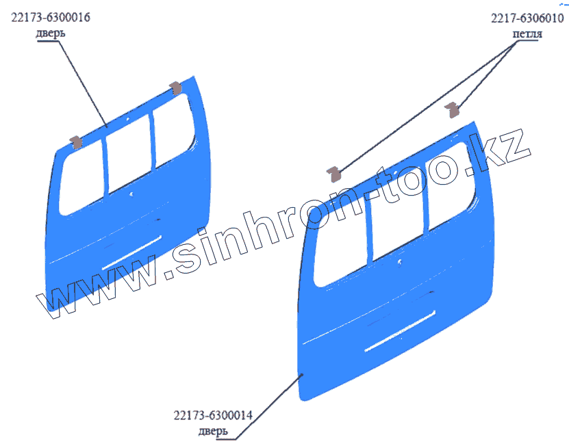 Каталог запасных частей к технике: ГАЗ-3302 (Кузовные дет.). Дверь