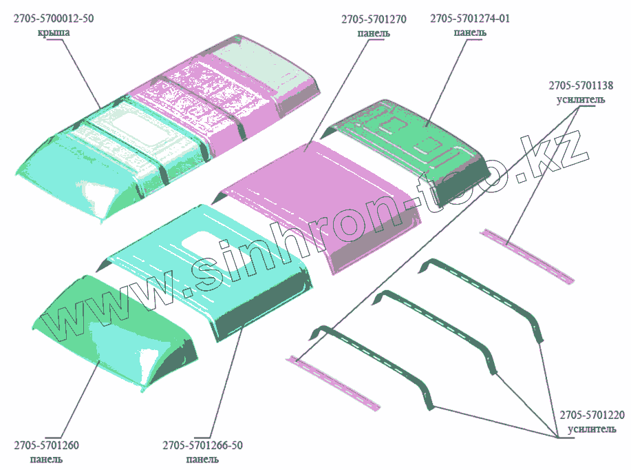 Каталог запасных частей к технике: ГАЗ-3302 (Кузовные дет.). Крыша