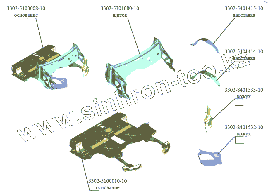 Каталог запасных частей к технике: ГАЗ-3302 (Кузовные дет.). Основание кабины