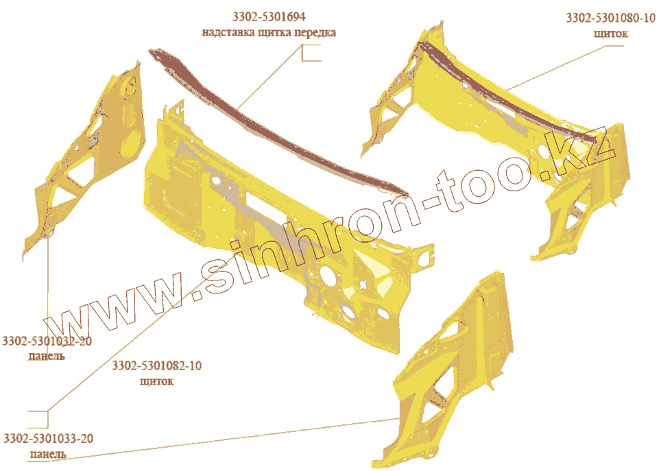 Каталог запасных частей к технике: ГАЗ-3302 (Кузовные дет.). Передок