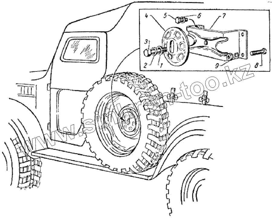 Каталог запасных частей к технике: ГАЗ-69. Держатель запасного колеса