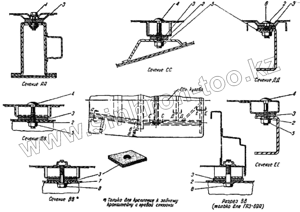 Каталог запасных частей к технике: ГАЗ-69. Крепление кузова