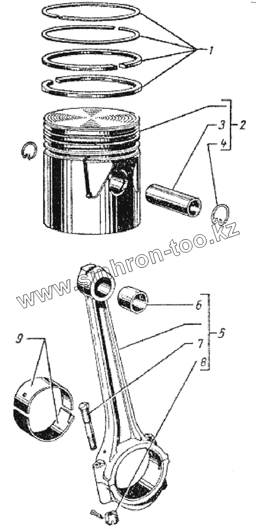 Каталог запасных частей к технике: ГАЗ-69. Поршни и шатуны