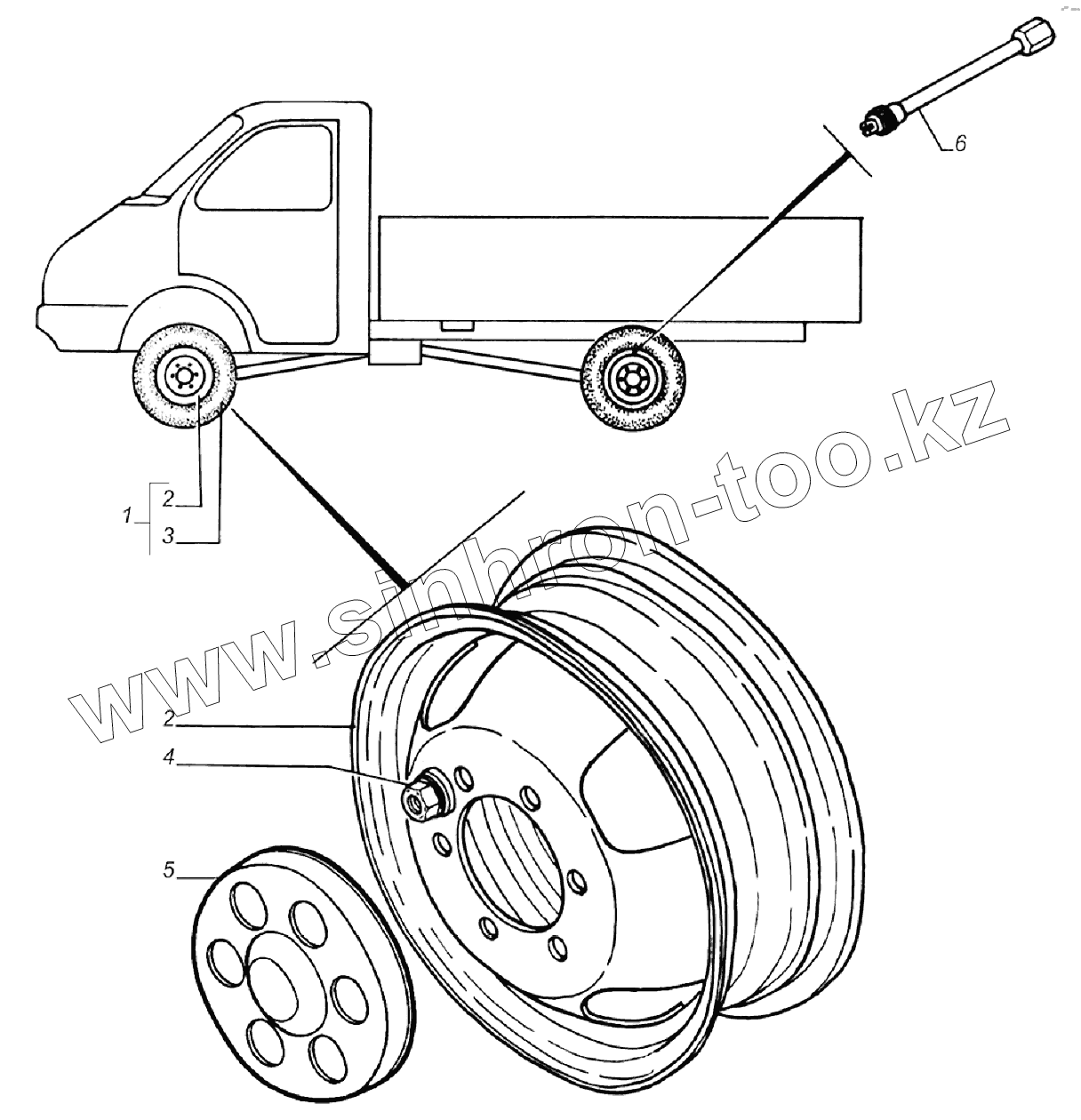 Каталог запасных частей к технике: ГАЗель 4x4 (Дополнение). Установка колес на автомобиле
