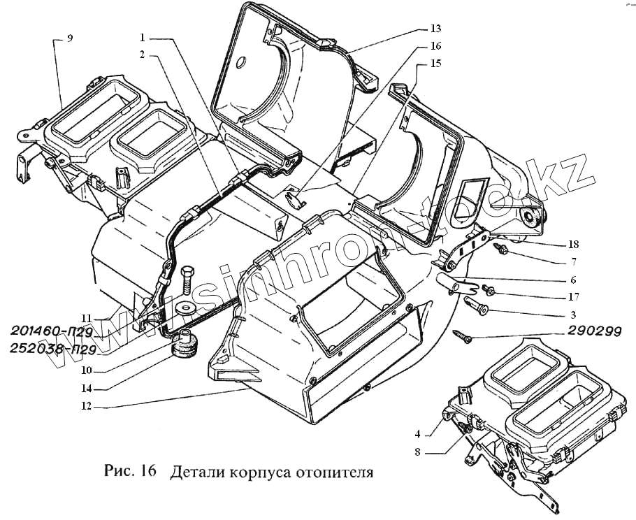 Каталог запасных частей к технике: ГАЗель, Соболь (2003). Детали корпуса отопителя