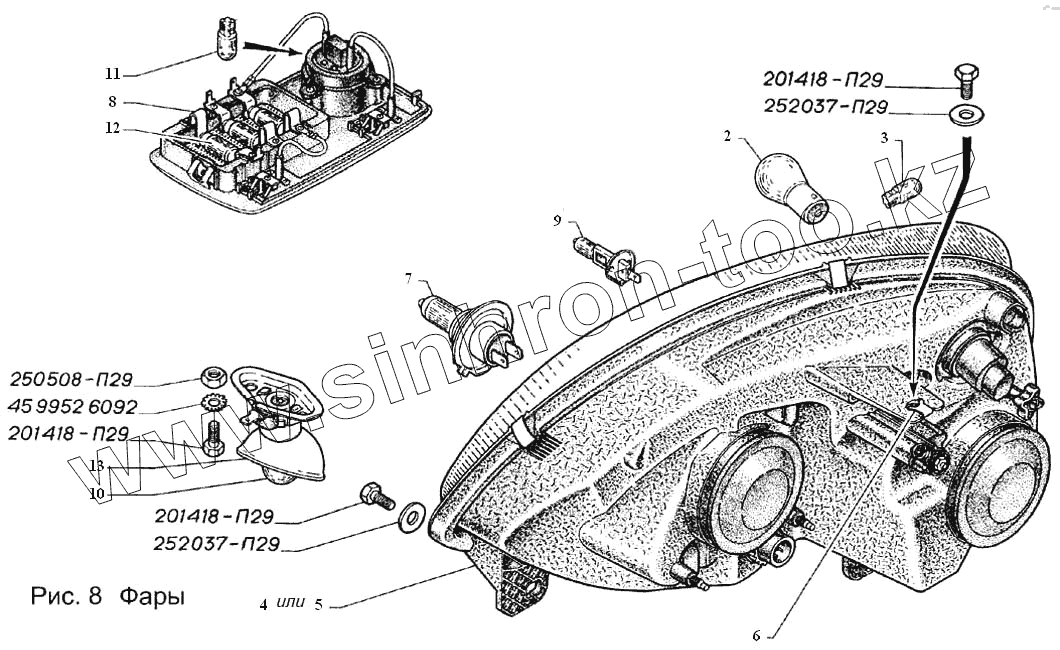Каталог запасных частей к технике: ГАЗель, Соболь (2003). Фары