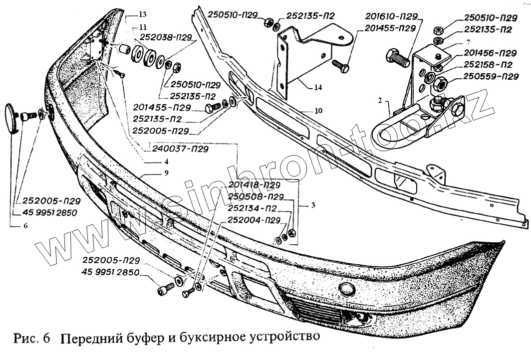 Каталог запасных частей к технике: ГАЗель, Соболь (2003). Передний буфер и буксирное устройство