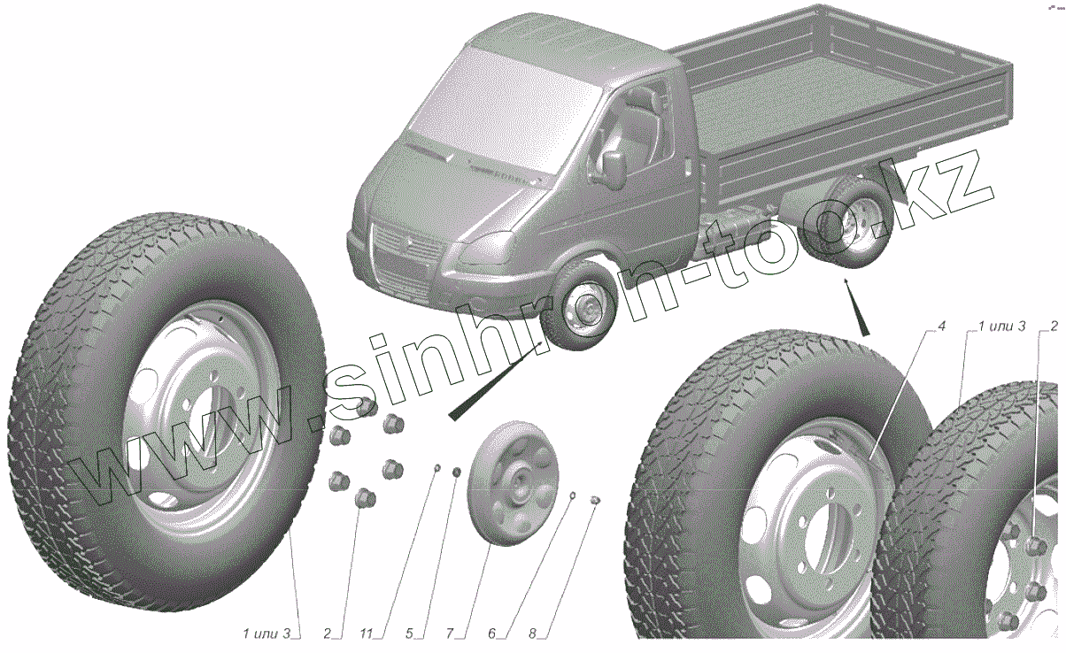 Каталог запасных частей к технике: ГАЗель-Бизнес 2705-393. 3302-3101001 Установка колес