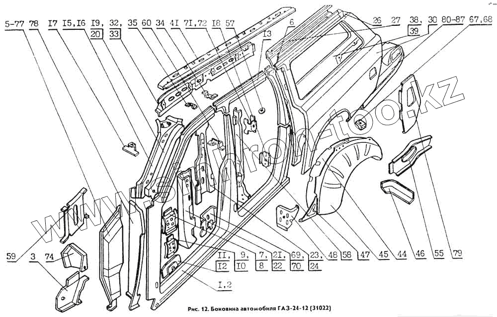 Каталог запасных частей к технике: ГАЗ Кузов ГАЗ 31029. Боковины