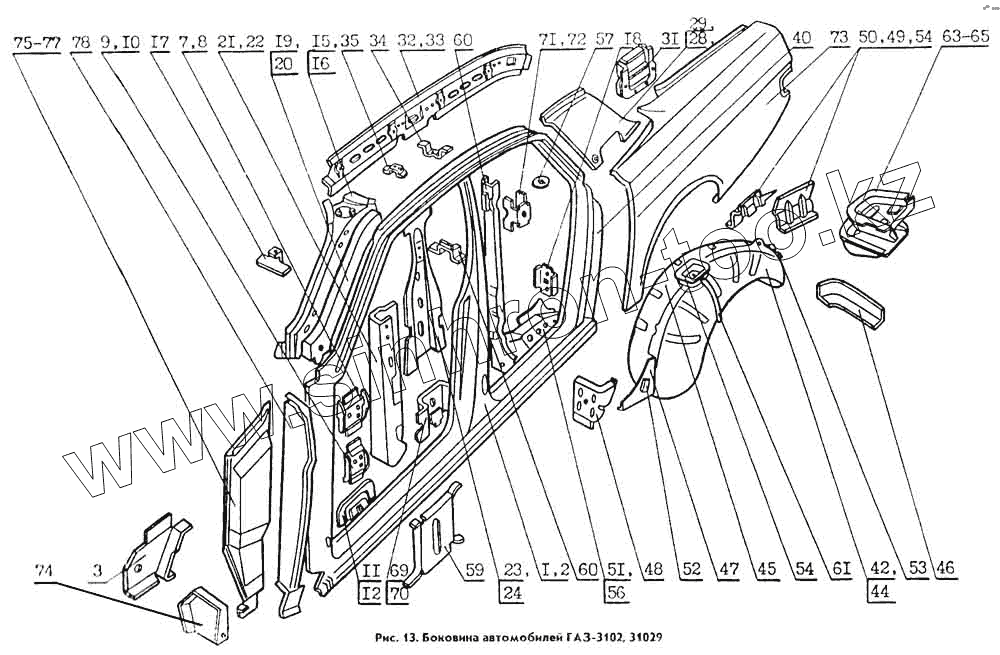 Каталог запасных частей к технике: ГАЗ Кузов ГАЗ 31029. Боковины