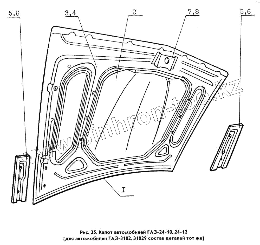 Каталог запасных частей к технике: ГАЗ Кузов ГАЗ 31029. Капот