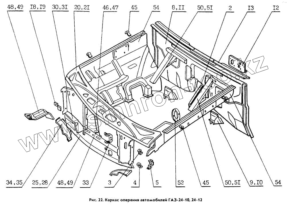 Каталог запасных частей к технике: ГАЗ Кузов ГАЗ 31029. Каркасы оперения