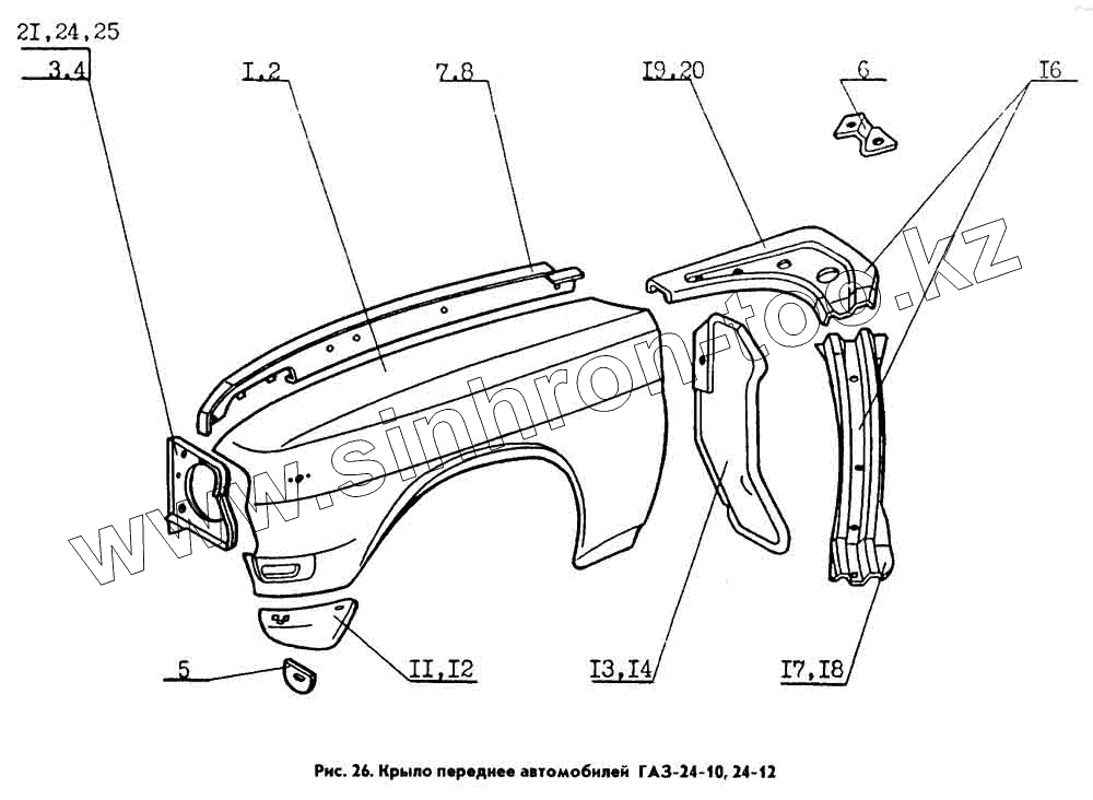 Каталог запасных частей к технике: ГАЗ Кузов ГАЗ 31029. Крылья передние