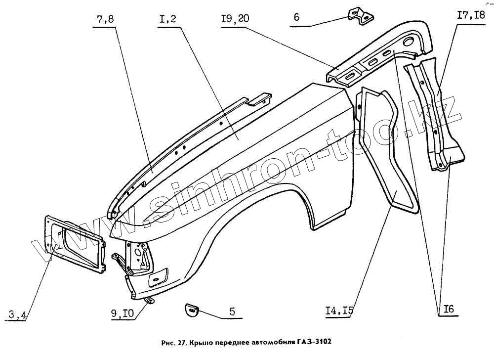 Каталог запасных частей к технике: ГАЗ Кузов ГАЗ 31029. Крылья передние