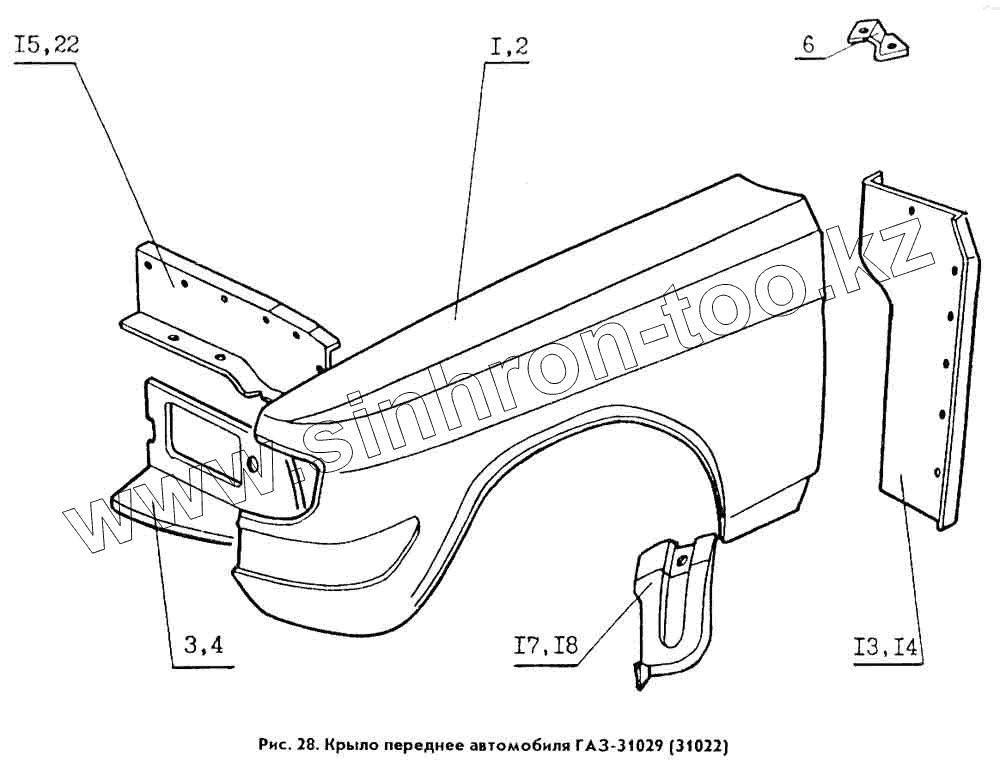 Каталог запасных частей к технике: ГАЗ Кузов ГАЗ 31029. Крылья передние