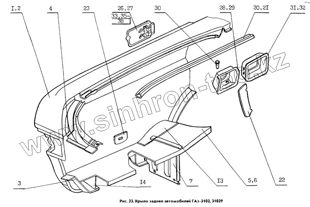 Каталог запасных частей к технике: ГАЗ Кузов ГАЗ 31029. Крылья задние