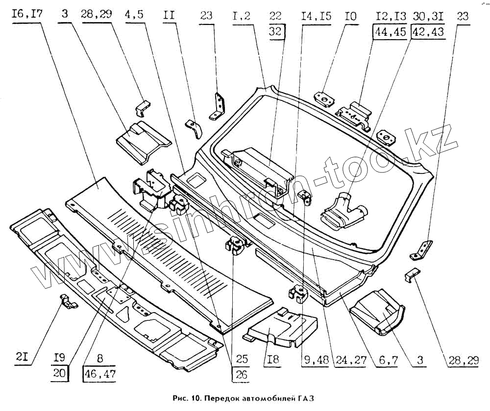 Каталог запасных частей к технике: ГАЗ Кузов ГАЗ 31029. Передок