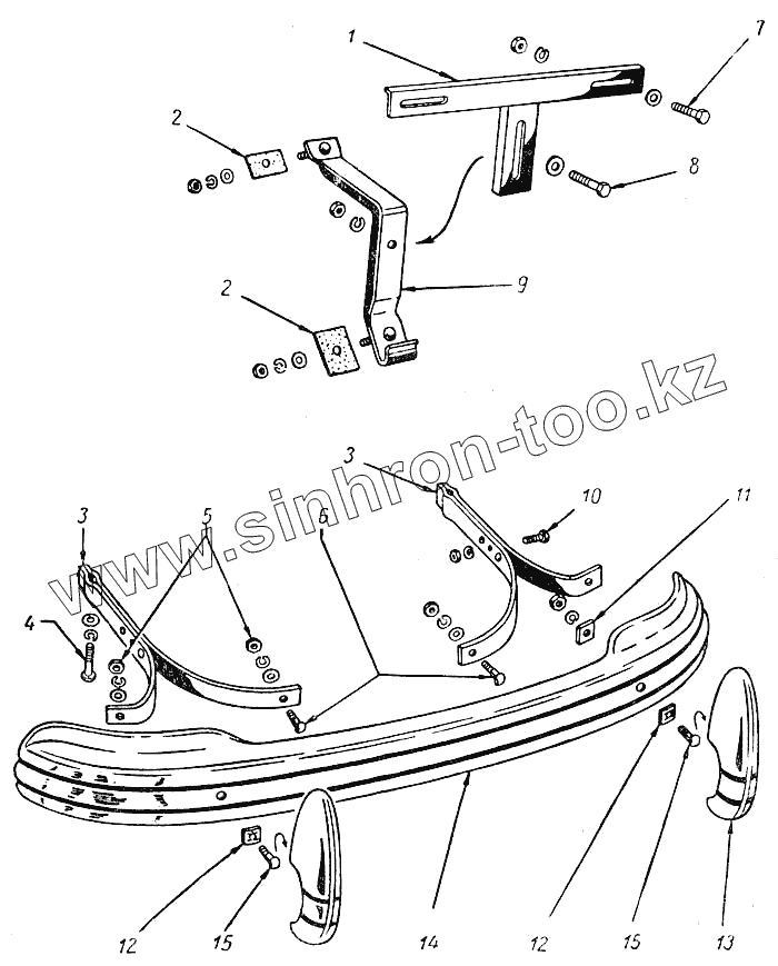 | 15 | 290785-П8 | Болт 1М10х1х38 крепления клыка к заднему буферу |