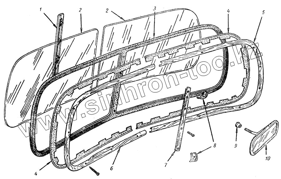 Каталог запасных частей к технике: ГАЗ М20 Победа. Детали ветрового окна
