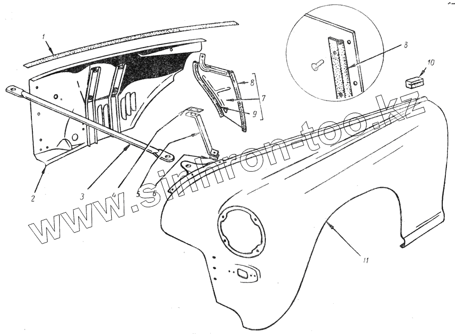 | 7 | 30-8403351 | Щиток переднего крыла левый в сборе | |