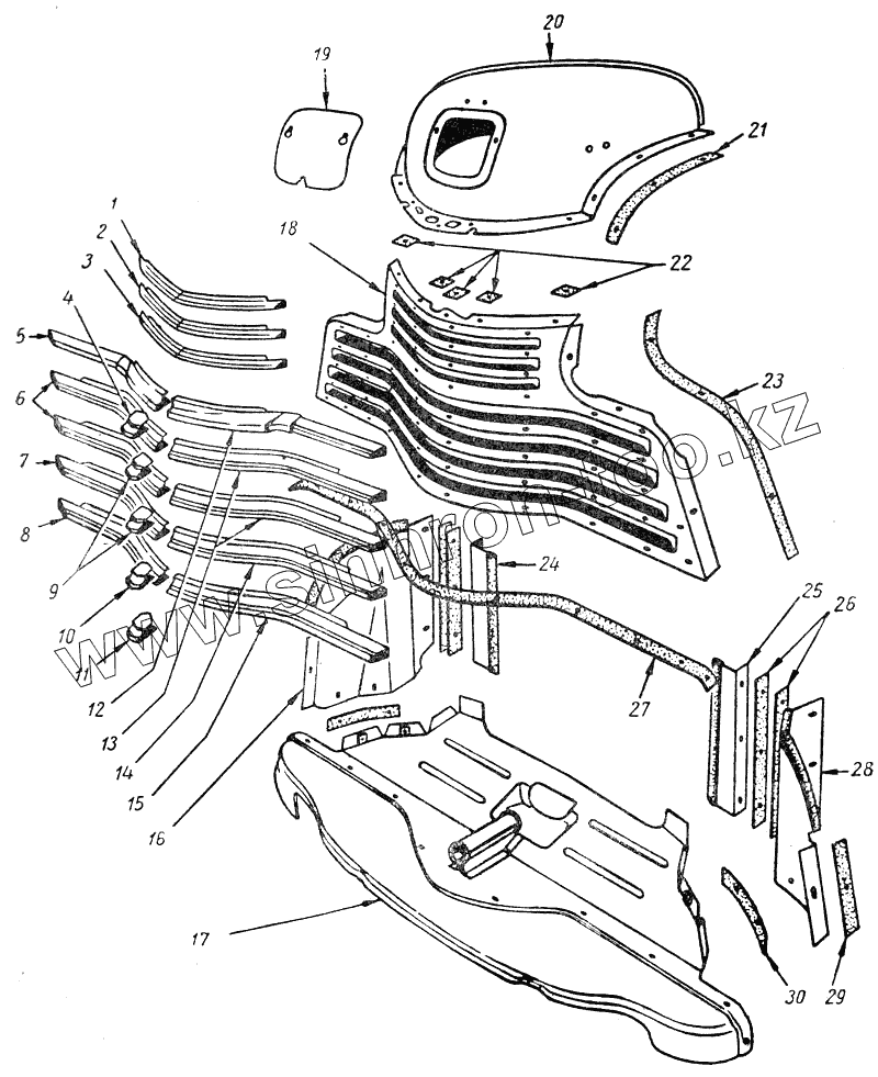 | 30 | 30-8401444-Б | Прокладка бокового отражателя облицовки радиатора нижняя |