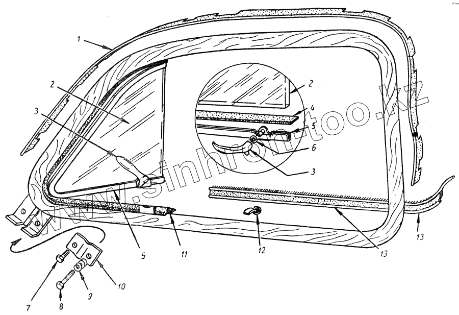| 5 | 30-6103064 | Рамка поворотного стекла передней двери правая в сборе | |