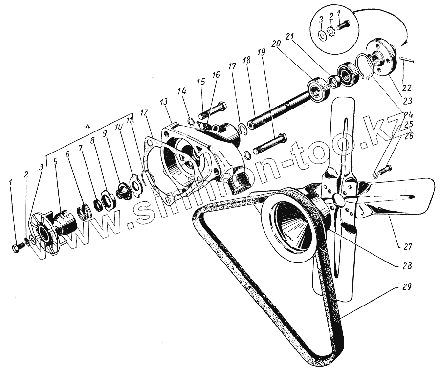 | 4 | 12-1307030-Б | Крыльчатка и сальник водяного насоса в сборе | |
