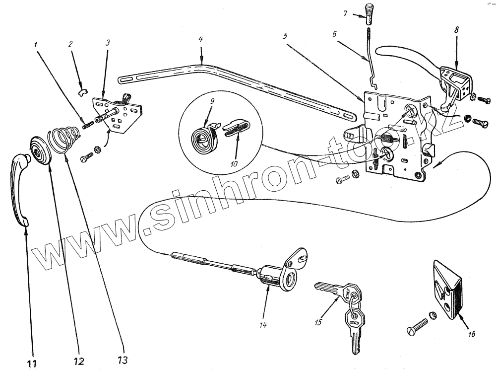 | 16 | 30-6105104 | Защелка замка двери в сборе |