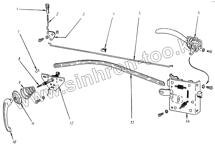 Каталог запасных частей к технике: ГАЗ М20 Победа. Замок и ручки задней двери