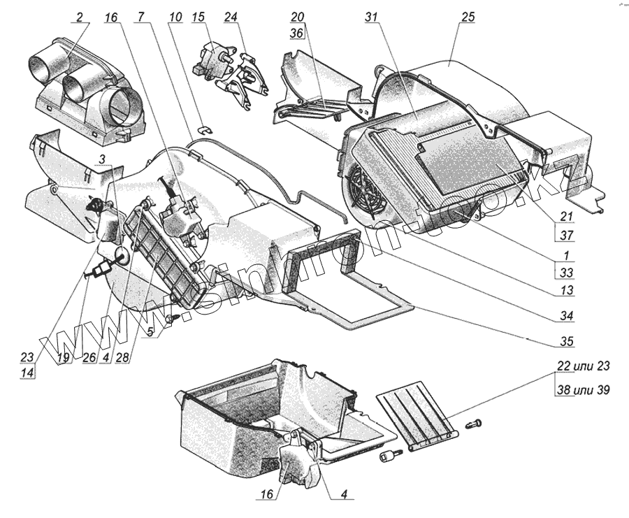 Каталог запасных частей к технике: ГАЗ Облицовка ГАЗ-31105, 3102. Отопитель а/м ГАЗ-31105