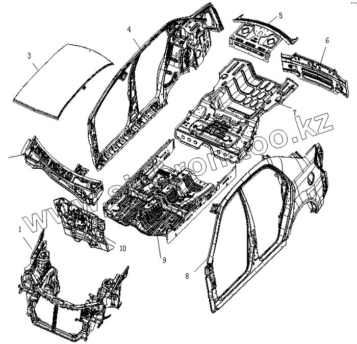 Каталог запасных частей к технике: Geely CK. BODY FRAME ASSY