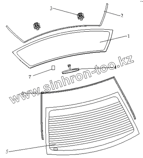 Каталог запасных частей к технике: Geely CK. FRONT & REAR WINDSHIELD