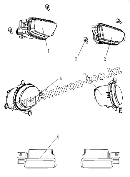 Каталог запасных частей к технике: Geely CK. FRONT FOGLIGHT & LICENSE PLATE LAMP ASSY