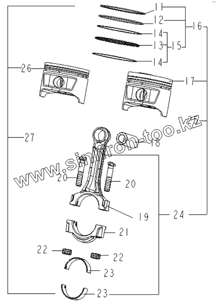 Каталог запасных частей к технике: Geely CK. PISTON CONNECTING ROD COMPONETS