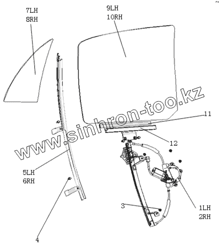 Каталог запасных частей к технике: Geely CK. REAR DOOR WINDOW REGULATOR ASSY