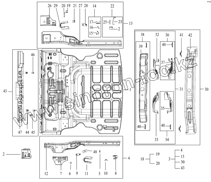 | 30 | REAR FLOOR 2# CROSS MEMBER ASSY | REAR FLOOR 2# CROSS MEMBER ASSY. | |