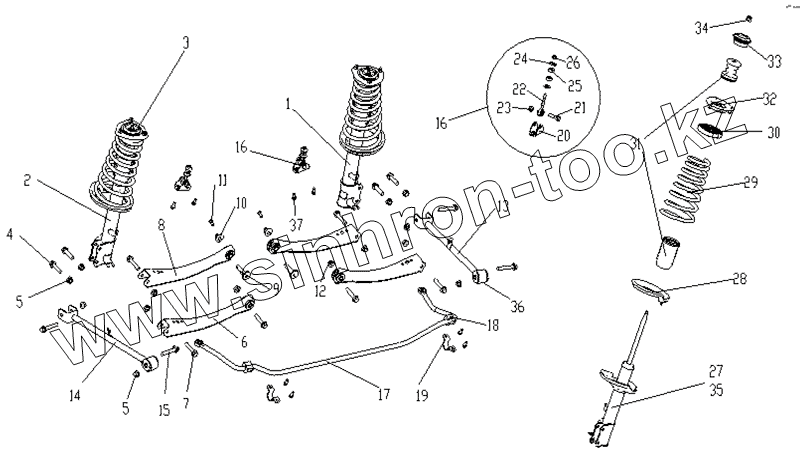 Каталог запасных частей к технике: Geely CK. REAR SUSPENSION ASSY