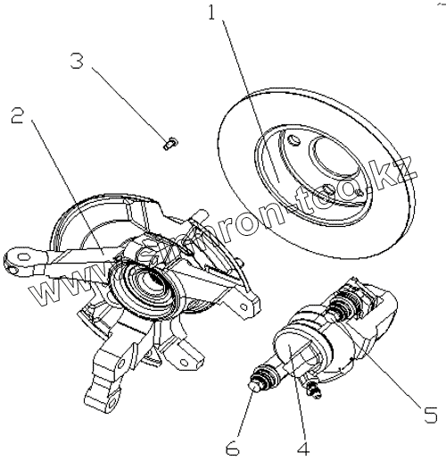 Каталог запасных частей к технике: Geely CK. RF DISC BRAKE WITH STEERING KNUCKLE ASSY
