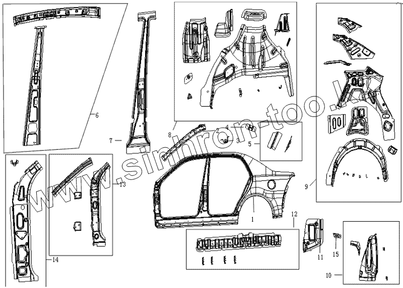 Каталог запасных частей к технике: Geely CK. RIGHT WALL ASSY