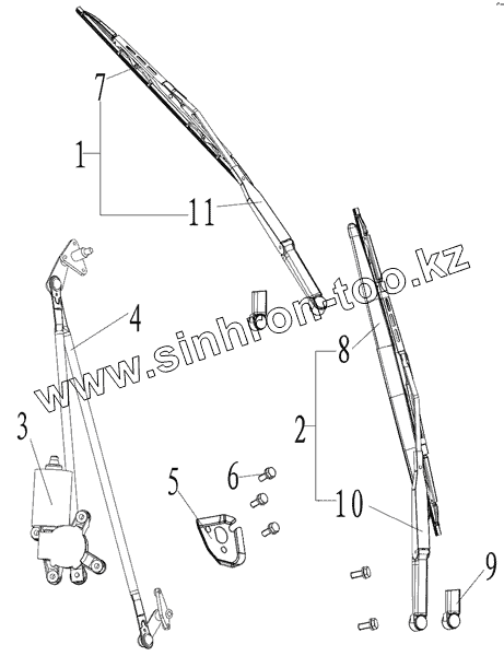 Каталог запасных частей к технике: Geely CK. WIPER ASSY