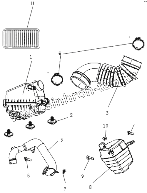 Каталог запасных частей к технике: Geely FC. AIR INTAKE SYSTEM