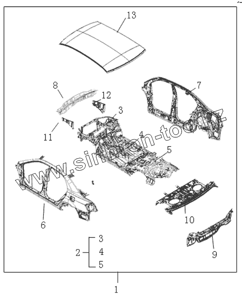 Каталог запасных частей к технике: Geely FC. BODY FRAME ASSY.